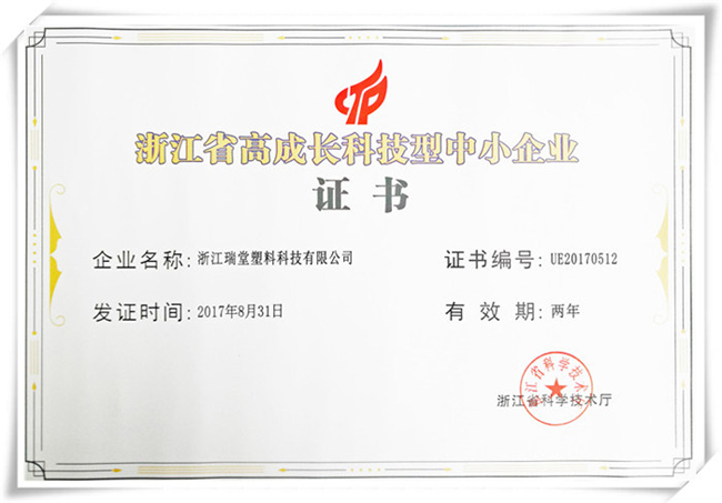 據(jù)浙科發(fā)高〔2017〕128號文件顯示,為貫徹落實《加快推進“一轉(zhuǎn)四創(chuàng)”建設“互聯(lián)網(wǎng)+”世界科技創(chuàng)新高地行動計劃》(浙政發(fā)〔2016〕24號)和《浙江省科技企業(yè)“雙倍增”行動計劃(2016—2020年)》(浙科改〔2016〕2號)精神,根據(jù)《浙江省高成長科技型中小企業(yè)評價指導性意見》(浙科發(fā)高〔2016〕87號)要求,經(jīng)地方推薦、核實和第三方評估,認定浙江瑞堂塑料科技有限公司等1476家企業(yè)為2017年度浙江省高成長科技型中小企業(yè)。