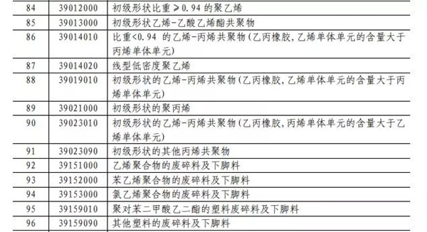 自美進(jìn)口固廢成為此批清單產(chǎn)品之一。此外,高密度聚乙烯、線性低密度聚乙烯、聚丙烯等都在此次清單之中。