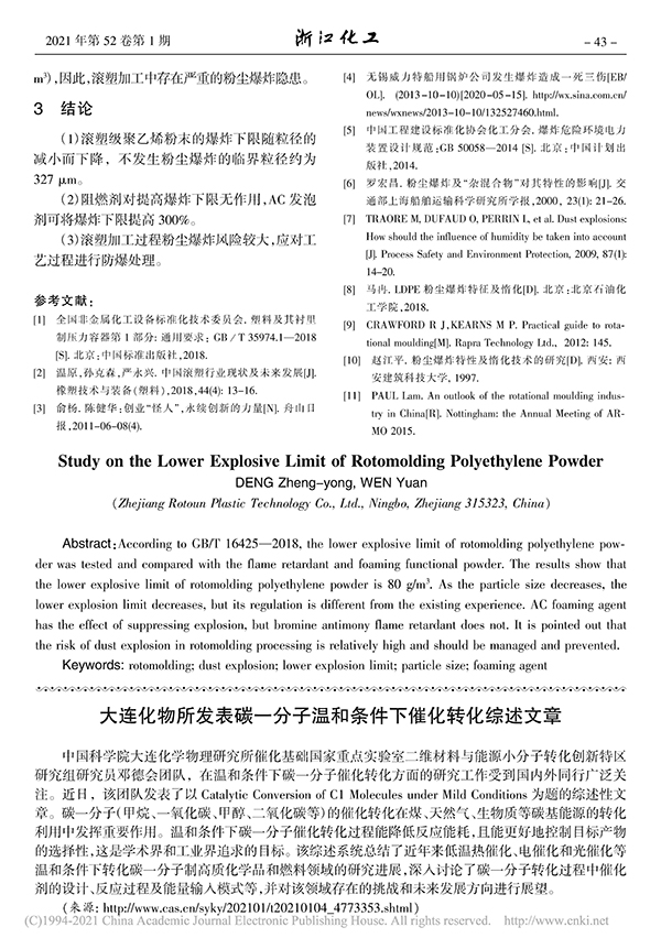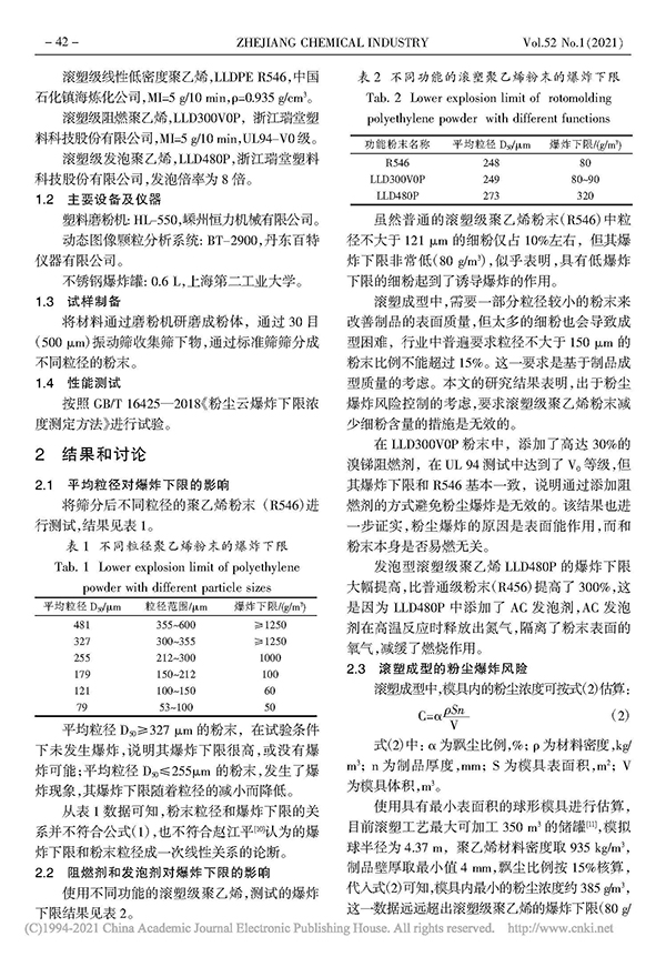 滾塑級(jí)聚乙烯粉末爆炸下限的研究