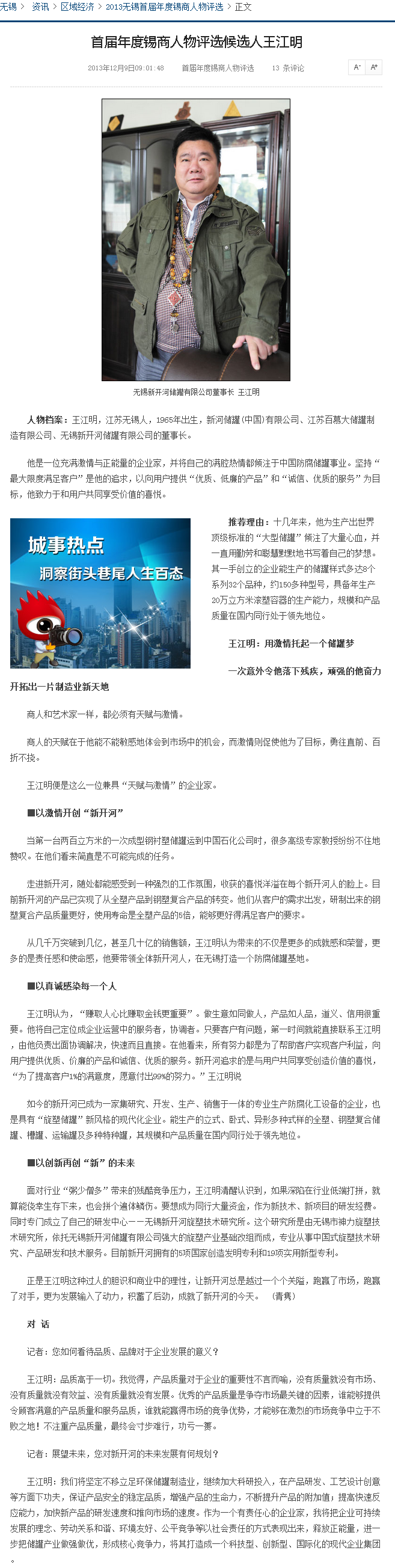 【2013-12-9】首屆年度錫商人物評選候選人王江明