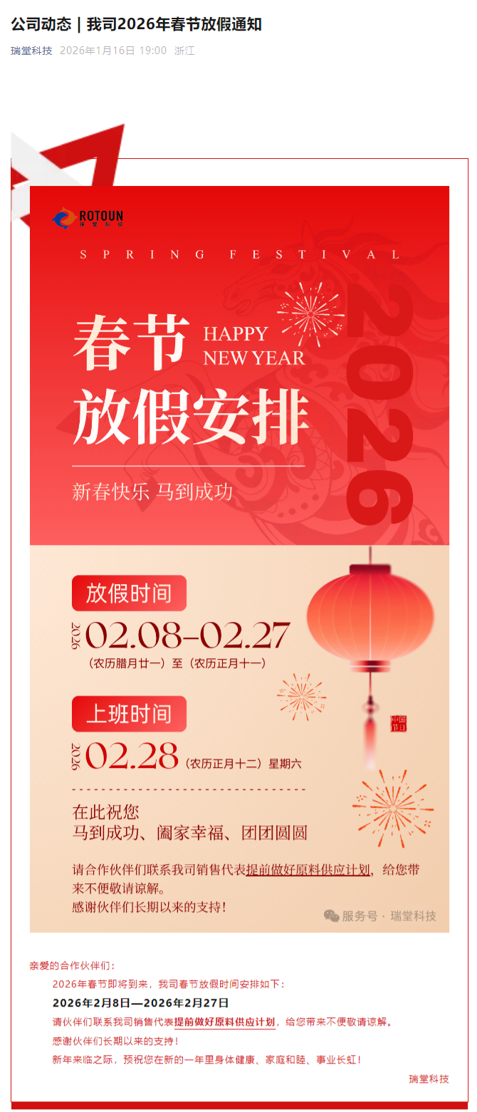 公司動(dòng)態(tài) | 我司2026年春節(jié)放假通知