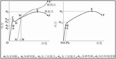 在應力應變曲線中,即使負荷不增加,伸長率也會上升的那一點通常稱為屈服點,此時的應力稱為屈服強度,此時的變形率就叫屈服伸長率;同理,在斷裂點的應力和變形率就分別稱為斷裂拉伸強度和斷裂伸長率。