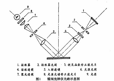 定義和原理:用數(shù)字表示的物體表面接近鏡面的程度。光澤度的評(píng)價(jià)可采用多種方法(或儀器)。它主要取決于光源照明和觀察的角度,儀器測量通常采用20°、45°、60°或85°角度照明和檢出信號(hào)。不同行業(yè)往往采用不同角度測量的儀器。如使用Ingersoll光澤計(jì)所測得的是對(duì)比光澤度(contrast gloss),主要用于白紙或接近于白紙光澤度的測定,高光澤紙(超過75%光澤度)和色澤光澤度的測定宜采用鏡面光澤度測定法。塑料制品的表面粗糙度可用光澤計(jì)測出并能定量地表示出來,同時(shí)這些制品表面若經(jīng)一定磨損后,還可以用其磨損前后的光澤度變化來表征。